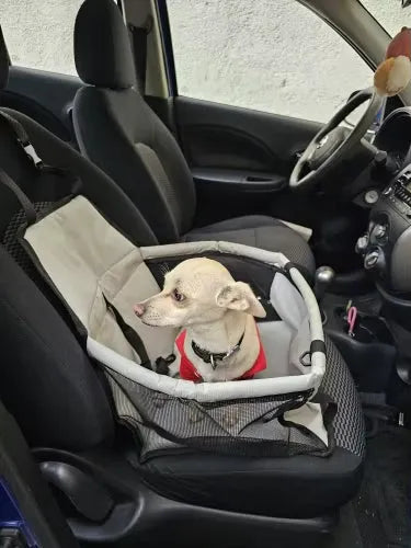"OMG, luv this pet car seat! My lil pup stays super safe while I'm driving. No more jumping around and I feel so much more focused on the road. Easy to hook up and fold away. Can't imagine road trips without it now 😊👍"